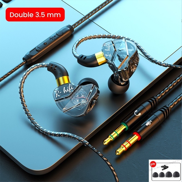 1. ⭐ Двойные проводные наушники с разъемом 3,5 мм