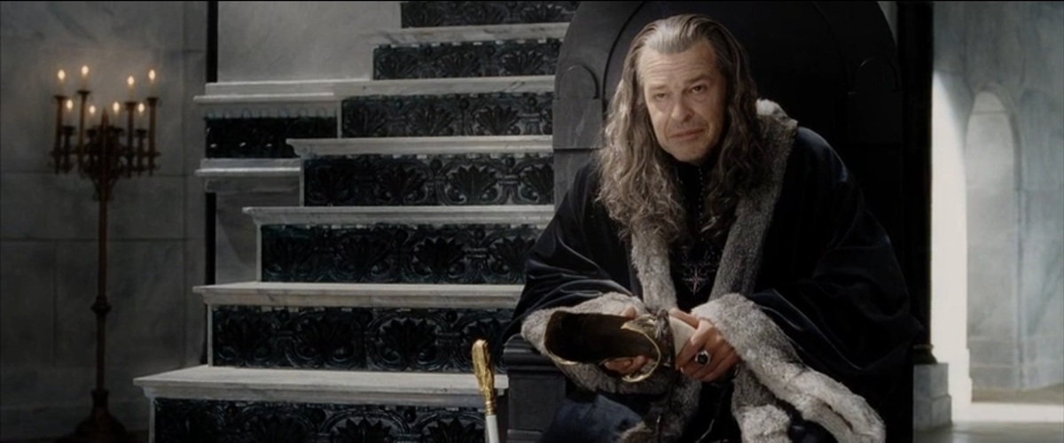 Впоследствии абсолютная власть Денетора над Гондором развращает его окончательно. Более того, вместе с этим у папаши начинает протекать и чердачок. Даже когда конец неминуем, Денетор пытается уйти, в буквальном смысле слова, в лучах славы. Но это лишь подчеркивает, насколько он одержим собственной гордыней. По сравнению с ним Саурон выглядит просто стесняшкой.