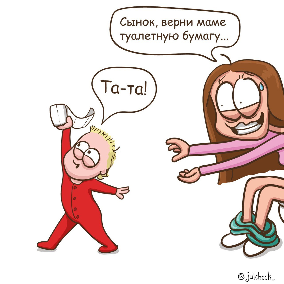 Знакомьтесь с Юлией Энслингер — с талантливой художницей, которая создает комиксы о своем материнстве и жизни своей семьи. В социальных сетях она более известна как Julcheck и привлекла внимание более 8 тысяч поклонников в социальных сетях. Основная часть её аудитории — это такие же мамы, как и она, которые видят в её комиксах собственную жизнь.