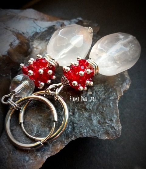 Шикарный, уникальный ювелирный комплект авторских украшений ручной работы из редких минералов - красной афганской шпинели, крупных кристаллов белого берилла, кварца-кракле и горного хрусталя в родированной фурнитуре. Материалы: белый берилл-гошенит (18\22*15 мм, Урал), натуральная красная шпинель (3 мм, Афганистан), горный хрусталь (8 мм, Бразилия), мельхиор, ювелирная родированная сталь, швенза - конго Длина 1 серьги (вес): 62 мм (9 гр.) Длина цепи с кулоном: 500 мм Длина кулона: 70 мм ...Красная шпинель — это драгоценный камень, самая ценная природная разновидность шпинели. По внешнему описанию она похожа на алый рубин. Иногда её упоминают как рубиновая или хромовая шпинель. Считается, что шпинель берёт энергию непосредственно из космоса. Драгоценный минерал является сильным оберегом от дурного энергетического влияния (порчи и сглаза). Он помогает открыть в себе сверхъестественные способности, выбрать правильную дорогу в жизни и добиться намеченных планов. ...Магические свойства бело