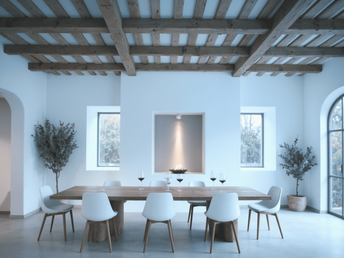 Натяжные потолки с балками способны полностью изменить восприятие пространства. Они придают комнате структурность, визуально вытягивают потолок вверх или, наоборот, делают его уютнее, создавая камерную атмосферу. Все зависит от выбранного цвета, формы и расположения балок. Светлые оттенки полотна в сочетании с деревянными балками зрительно увеличивают высоту, а темные или контрастные конструкции добавляют глубины интерьеру. Такой прием особенно полезен для небольших помещений, которым не хватает простора. Балки на натяжном потолке не только украшают помещение, но и становятся важной частью дизайна. Они могут подчеркивать определенный стиль интерьера: Благодаря широкому выбору материалов и текстур можно создать неповторимую атмосферу, которая подчеркнет индивидуальность вашего дома. Балки могут выполнять не только декоративную, но и практическую функцию – они помогают зонировать пространство. Например, в кухне-гостиной они выделяют обеденную зону, в спальне создают эффект уюта, а в каби