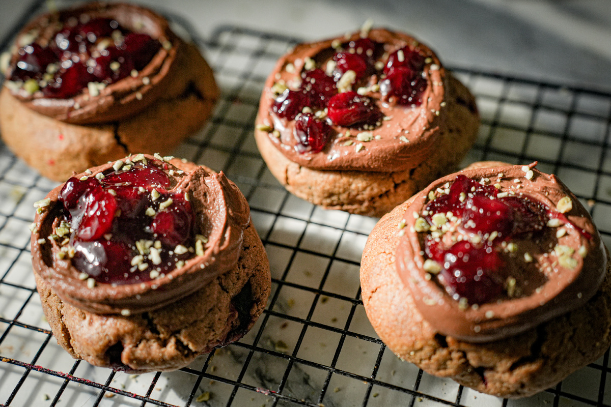 Сейчас готовлю к выпуску новый формат популяризации блюд с дикоросами: дегустацию. И это один из рецептов для неё. Печенье в крамбл-кукис-стиле. Название десерта пошло от наименования кондитерской Crumbl Cookies, которая сделала привычное американское печенье хитом. Их розовые коробки стали трендом соцсетей, ролики с хештегом #CrumblReview собирают миллионы просмотров. А секрет прост: множество сочетаний наполнителей и начинок и украшение сверху. Я конечно не могла пройти мимо и тоже захотела приготовить эти не то печенья, не то пирожные. Но со своей любимой мукой из желудей. Несколько недель у меня ушло на то чтобы довести до ума этот рецепт! Я меняла количество желудевой муки, пробовала разные начинки, наполнители и декор. Вот, например, нью-йоркские кукис с наполнителем из рубленного фундука и кусочков шоколада. А внутри разные начинки: солёная карамель, маршмеллоу, Нутелла. Декор из шоколада и орехов. Это просто печенье в американском стиле с кусочками белого шоколада внутри и де