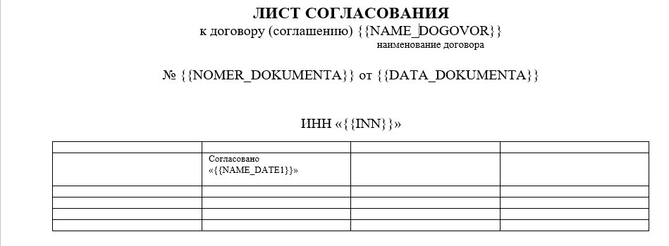 Для того чтобы загрузить свой шаблон необходимо для начала определить поля, которые будут меняться в документе. Вы можете выделить данные значения, чтобы было удобнее ориентироваться в документе.