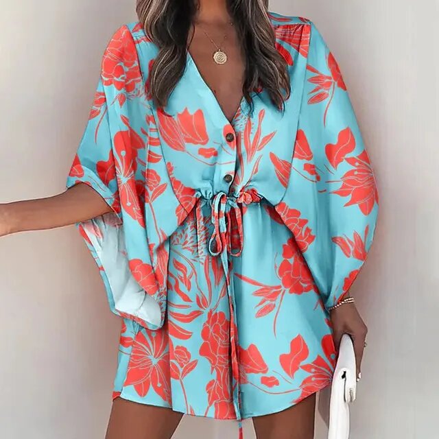 8. ⭐ Женское мини-платье с цветочным принтом V-образным вырезом и открытой спиной