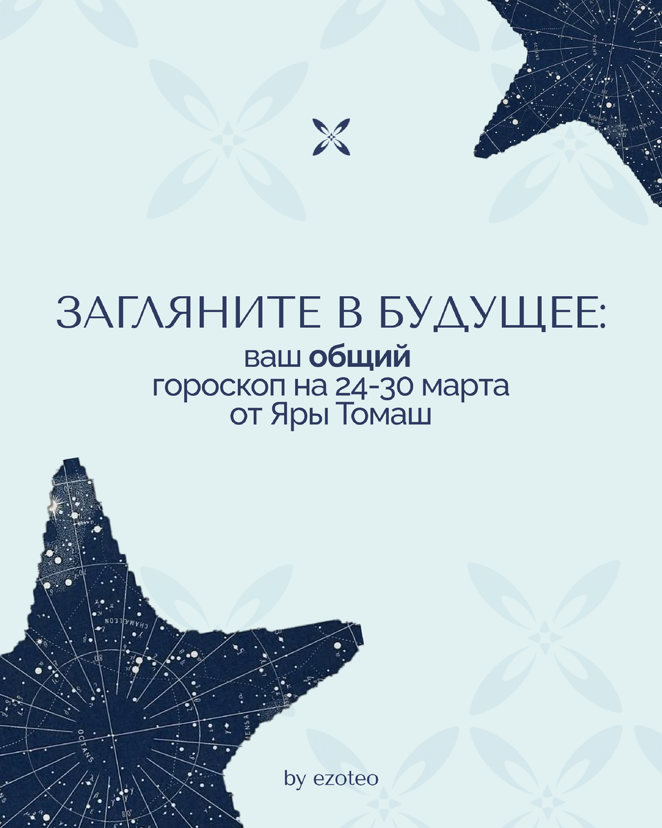Дорогие друзья! Яра Томаш подготовила для вас 3 гороскопа на эту неделю, чтобы вы могли спланировать ее заранее 🩵 Читать любовный гороскоп Читать финансовый гороскоп Давайте начнём с общего прогноза: что ждёт каждый знак зодиака на этой неделе? ОВЕН. Парад планет в вашем знаке открывает перед вами все двери с самого начала недели. Ваше обаяние помогает добиться желаемого. В первые дни недели смело просите повышения, звоните бывшим или напоминайте о долгах — к середине недели ваши усилия увенчаются успехом. Однако конец недели менее благоприятен: будьте осторожны с тайными завистниками и мошенниками. Также ждите новостей издалека — возможно, из-за границы. ЛЕВ. Начало недели может начаться с незапланированной командировки или срочной поездки. Будьте внимательны на дороге и подготовьтесь к возможным задержкам. Вам придется решать проблемы партнеров, клиентов или коллег, но это положительно скажется на ваших доходах — ждите премии или хороших командировочных. В выходные отдохните с бл
