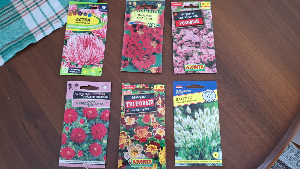 Здравствуйте друзья и гости канала. Какие же семена цветов осталось посеять в апреле? А осталось совсем немного. И можно отдыхать.😂 Астра пионовидная "Седая дама" розовая (однолетник). В прошлом году сажала такой вид, но цвет другой, очень понравился. Высота около 70 см, цветки махровые. Конечно, можно высадить их сразу в грунт на рассаду, но их не кому будет поливать. Лагурус (заячий хвостик) (однолетник). Это моя вторая попытка вырастить хвостик. Кустик высотой 20-30 см с нежными пушистыми соцветиями. Цветет все лето. Можно использовать в сухих букетах. Мимулюс "Тигровый" смесь сортов (однолетник). В условиях юга можно выращивать, как многолетник. Компактные кустики высотой 25-30 см, цветки собраны в кистевые соцветия. Очень хорошо подходит для контейнерного выращивания. Для меня первый опыт. Настурция "Махагон" (однолетник). Многие знакомы с этим цветком. Ни когда не подводит, всегда вырастает, занимает большой объем пространства и цветет обильно, особенно во второй половине лета.