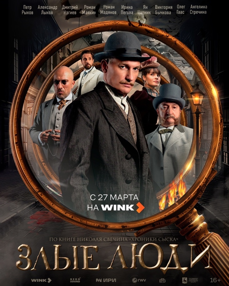 Премьера восьмисерийного ретродетектива «Злые люди» (16+) о преступлениях в Нижнем Новгороде конца XIX века состоится на Wink.ru 27 марта. Детективный сериал основан на серии рассказов нижегородского писателя Николая Свечина «Хроники сыска». В главных ролях — Дмитрий Нагиев, Петр Рыков, Роман Маякин и Александр Лыков.