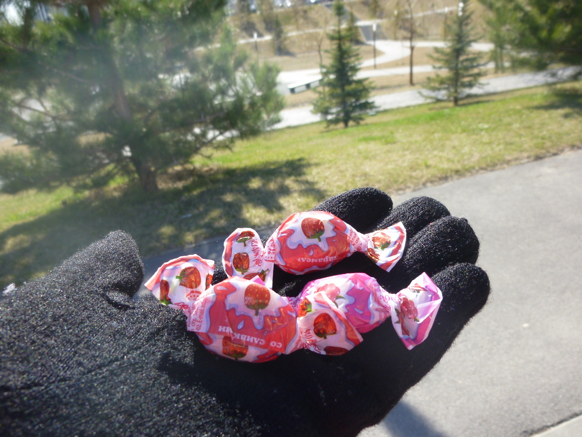 Всем привет. Сегодняшний день выдался солнечным, хотя и прохладным (+7, но с ветром), так что мы довольно много времени провели на улице. На прогулки берём с собой карамельки, яблоки, бутерброды, чай в термосе... На этот раз решили пройтись для контраста разнообразия по границе с дачными посёлками. Здесь, как обычно, ведётся какое-то строительство. Деревья уже начали выпускать молодые зелёные листочки. Ещё вчера это не было заметно, а сегодня - почки раскрылись, и посмотрите, какая из них проклюнулась красота! Хотя у кого-то ещё Новый год - с ёлочек до сих пор не сняли праздничные шары. ) Здесь открыли новый продуктовый магазин. Вдалеке виден жилой комплекс "Янтарный город" на Лысой горе. По дороге заходили во дворы - поиграть и покататься. Возле песочницы в одном из дворов кто-то оставил старые игрушки - может, пригодятся. Надо и нам поступить так же, много накопилось ненужных вещей. Здесь ремонтируют дорогу. На стенах некоторых домов изображены животные. Вот, например, сова. Так выгл
