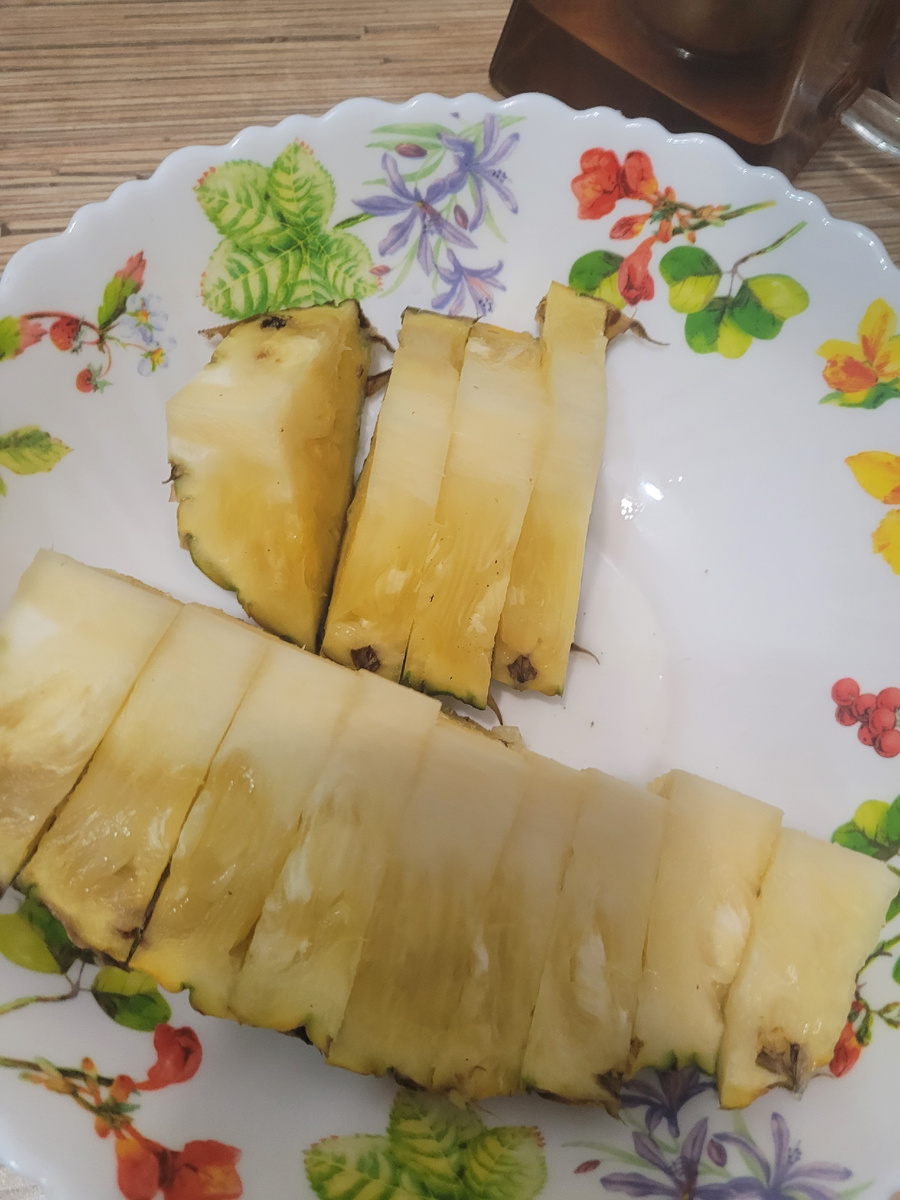 Всем доброго вечера. Вчера встретили дочь в аэропорту. Прилетела без задержки. Вперёд улететали тоже вовремя. Видимо сильно вредных в самолёте не было. Привезла в гостинцы 3 ананаса, 3 манго, 2 папаий ( может с ошибкой написала, не знаю как правильно). Манго дожило нормально, ананас один чуть подгнил, но обрезали, а вот папаии обе испортились, даже фотографировать не стала. Жалко конечно, столько везла и все выкинуть. Ну ладно, что сейчас сделать. Ананасы очень вкусные, такие конечно у нас не продают, привозят зелень. Манго тоже вкуснящие. Забыла сфотографировать ананас, порезала-потом вспомнила... Ну конечно р ом и магнитики, для всех. Посмотрели на дочку, пообщались немного. Поездка понравилась, не пожалела, что поехала, отдохнула хорошо. Ну а потом поехали в гости к сыну. Внука попроведовать. Увезли ананас, манго, папаий ( у них как раз и поняли, что испортился). Пообщались с внуком, покапризничал немного, не домогает, вирус какой-то не хороший ходит. Хворает малост