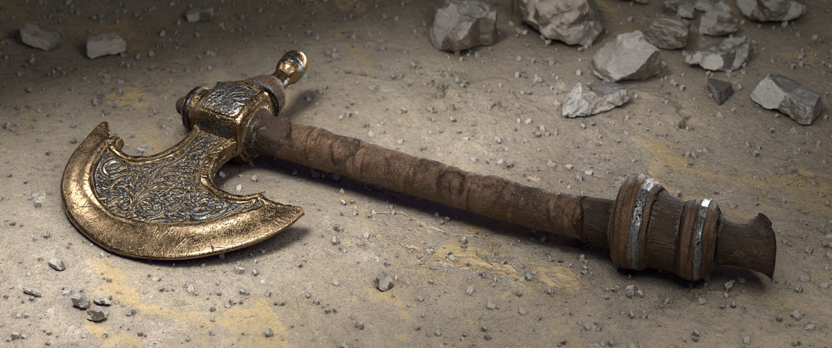 Оценка изображения средневекового боевого топора Представленное изображение демонстрирует высококачественный рендеринг исторического топора, вероятно, средневекового или раннего современного периода. Изображение отличается продуманной композицией и техническим совершенством с визуальной точки зрения. Технические характеристики Базовые параметры Изображение имеет разрешение 1536×864 пиксе