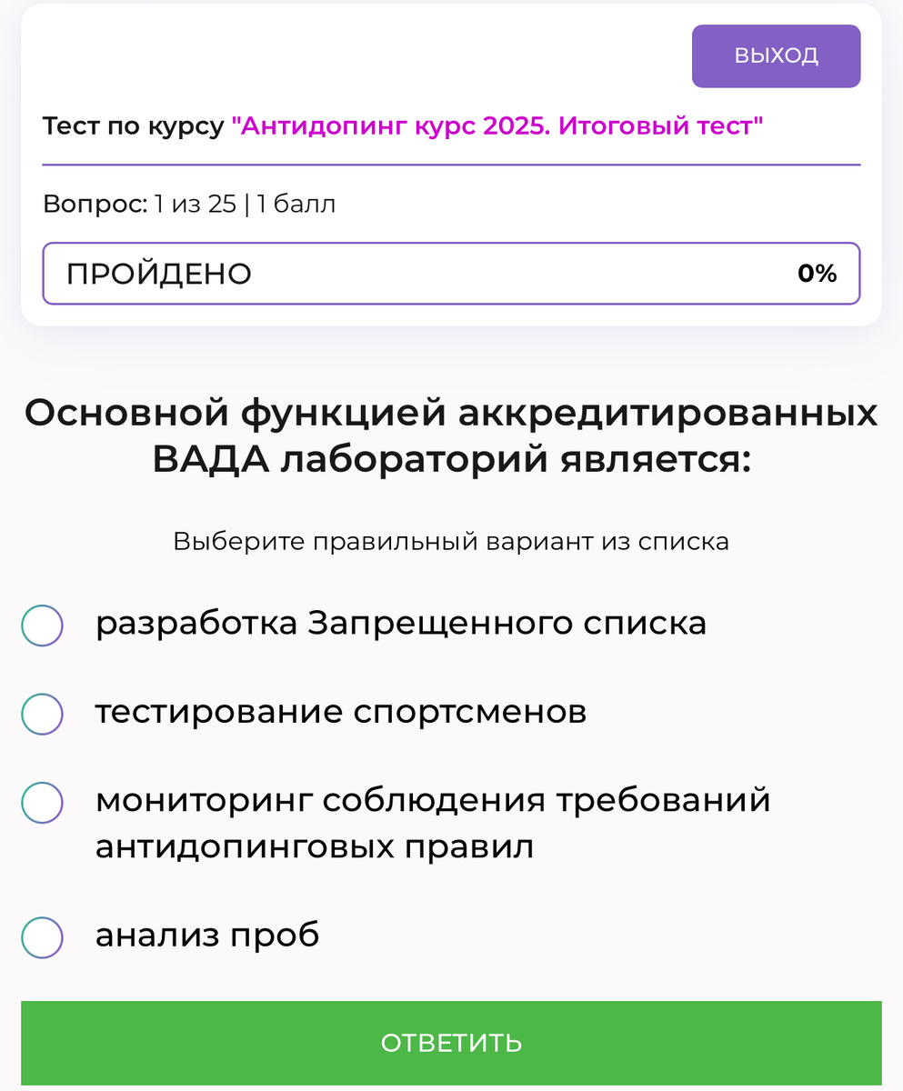 +для самопроверки. Незнание антидопинговых правил может негативно сказаться на спортивной карьере