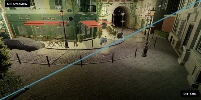 В числе анонсов GDC была технология масштабирования ASR на основе AMD FidelityFX Super Resolution 2. Arm утверждает, что технология ASR может обеспечить прирост производительности до 53% на графике Immortalis G720. Что не менее важно, технология помогает снизить энергопотребление на величину до 20%, что для автономных устройств может быть даже важнее, чем повышение производительности.