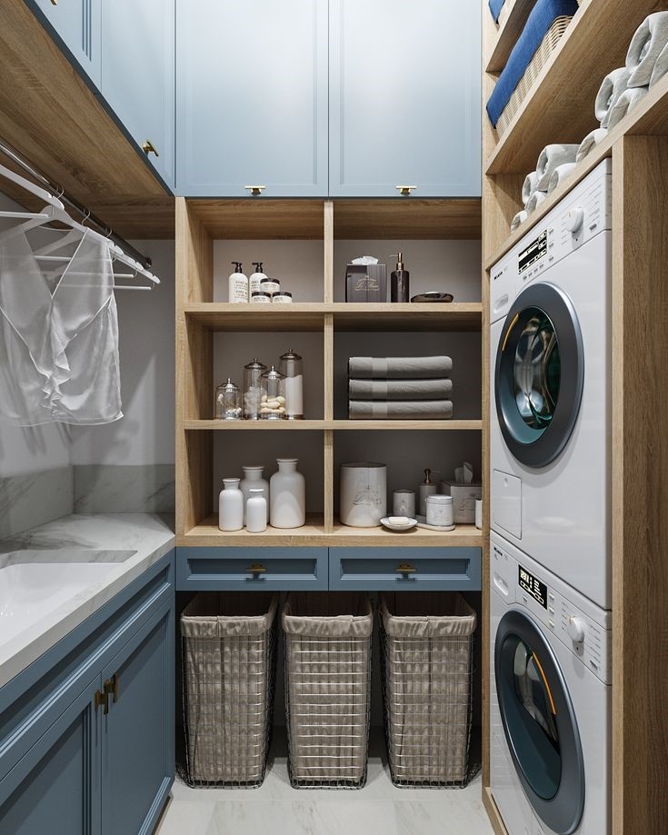 🏡 Когда мы говорим о комфортной жизни в загородном доме, перед глазами возникают уютная гостиная, просторная кухня или большая спальня. Но немаловажной частью идеального дома являются функциональные технические помещения, обеспечивающие порядок и удобство. И одно из них - это постирочная. Почему это удобно? Представьте: красивый, просторный дом, все идеально, но… влажные вещи сушатся в спальне, на кухне гудит стиральная машина, а в ванной - пахнет бытовой химией. Наличие постирочной сразу решает эти проблемы: 🔹 Порядок и комфорт. Стиральные и сушильные машины не мешают в других помещениях. Вся бытовая техника находится в одном, специально отведённом для этого месте. 🔹 Экономия времени. Всё, что нужно для стирки и уборки, находится под рукой. 🔹 Эстетика и тишина. Громоздкая техника спрятана, шум и вибрация минимальны, но при этом бытовые задачи выполняются. При этом для постирочной необязательно организовывать отдельную комнату, ее легко можно разместить в составе котельной или гост