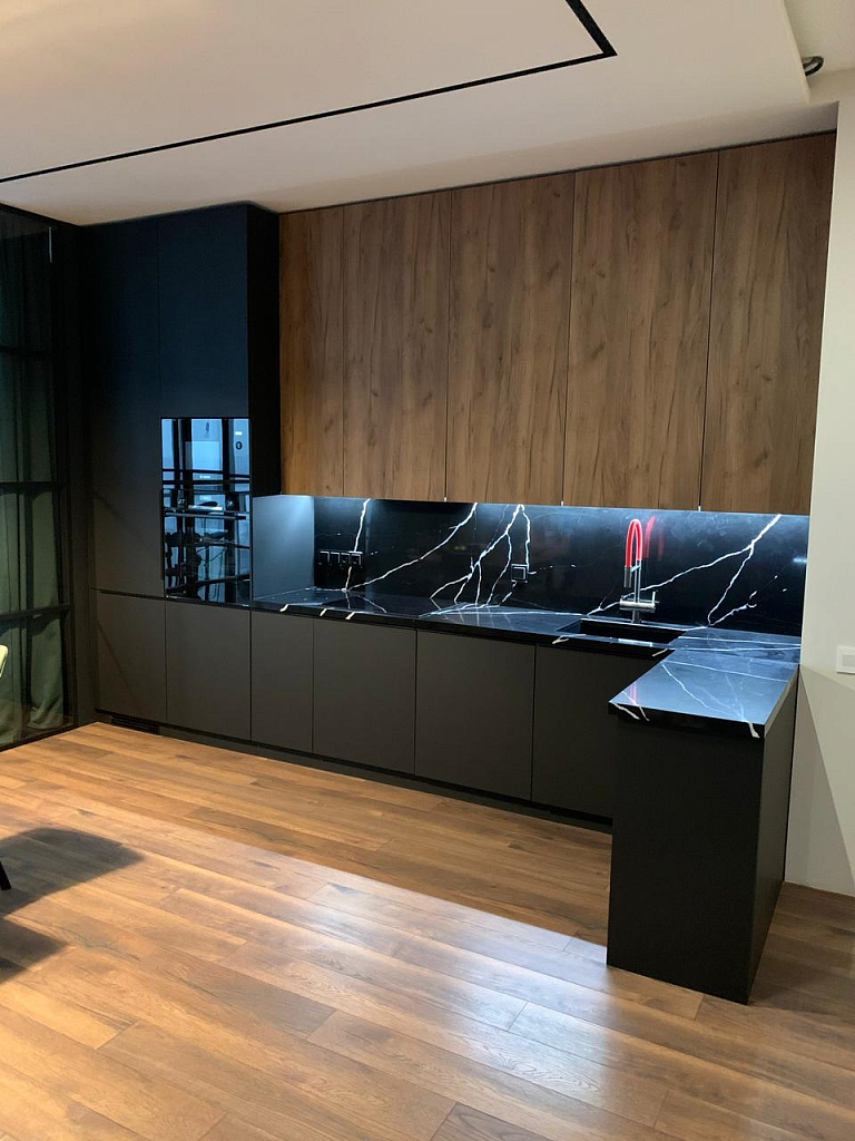 На кухне Infiniti — фасады FENIX NTM + Эко-Шпон «Дуб крафт»