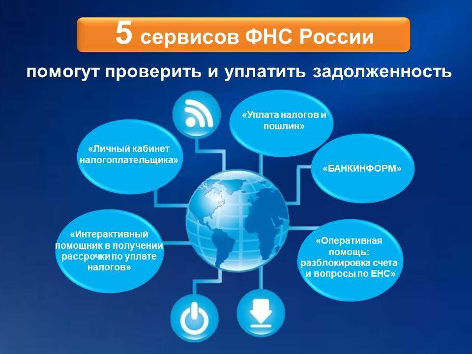 Представляем 5 наиболее востребованных сервисов ФНС России, которые помогут вам проверить и уплатить задолженность по налогам. Более подробно о том, как правильно уплатить задолженность по налогам, определить причину блокировки счета в банке, оперативно разобраться с сальдо ЕНС, а также о возможности получения рассрочки по налогам, читайте в наших карточках. Эти сервисы ФНС значительно упрощают взаимодействие налогоплательщиков с налоговой службой. Они позволяют оперативно получать информацию о своих налоговых обязательствах, избегать просрочек и связанных с ними штрафов и пеней. Один из ключевых сервисов – "Личный кабинет налогоплательщика". Здесь можно узнать о начисленных налогах, произведенных платежах, а также получить актуальную информацию о состоянии Единого налогового счета (ЕНС). Сервис "Уплата налогов и пошлин" предоставляет возможность онлайн-оплаты налогов с использованием банковской карты или других доступных способов. Это удобно и экономит время, избавляя от необходимости