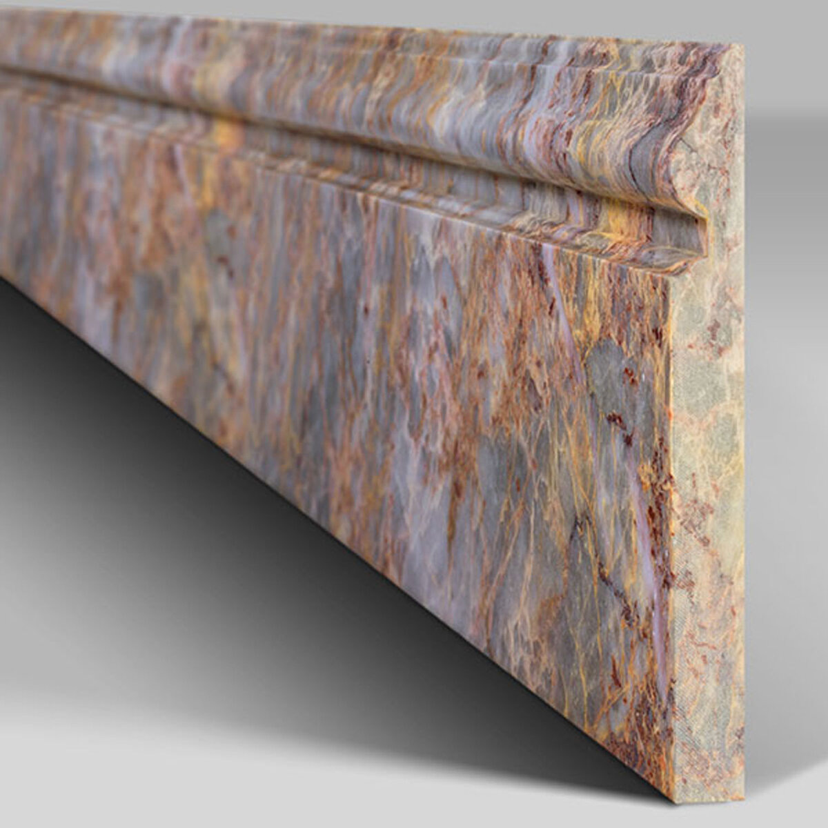 Гранит: Прочный и долговечный материал, устойчивый к царапинам и повреждениям. Гранитные плинтусы идеально подходят для помещений с высокой проходимостью.
