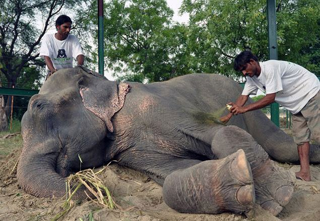 На долю слона по имени Раджу выпало немало испытаний: совсем маленьким браконьеры отняли его у матери, хозяева неоднократно сменялись, и наконец он попал в руки попрошаек, которые с помощью экзотического животного вытягивали деньги из туристов. Только в июне 2014 года в индийском штате Уттар-Прадеш местные защитники животных смогли избавить уже пожилого слона по кличке Раджу от жестоких хозяев. В общей сложности Раджу провел в рабстве 50 лет! Все это время он был закован в кандалы, при этом хозяева, посвидетельствам очевидцев, постоян но избивали и унижали его. Каждый день слон был вынужден исполнять