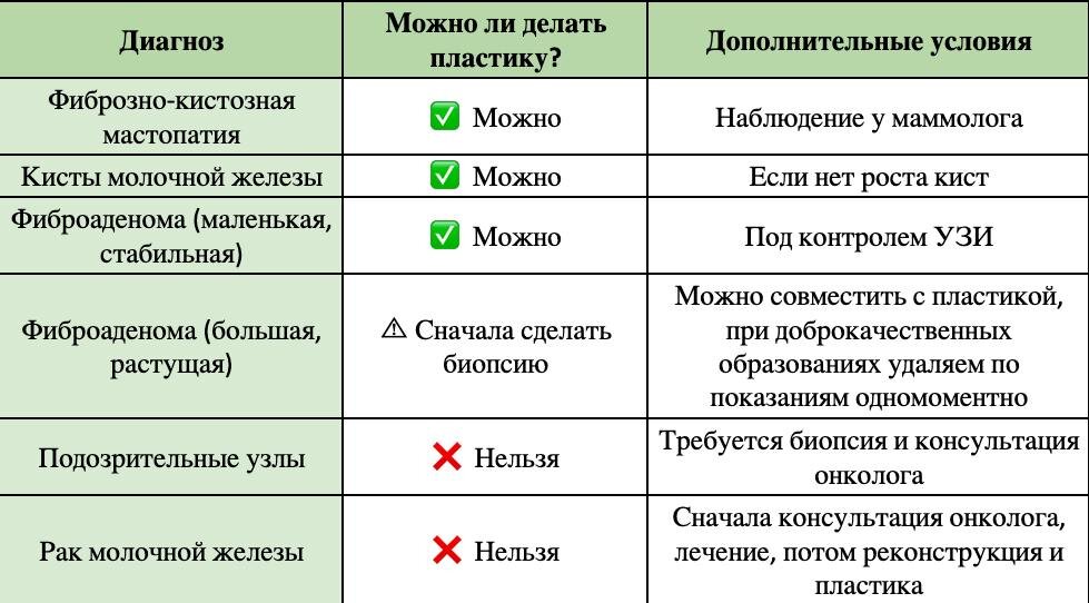 Пластика груди при наличии опухолей, мастопатии и других образований: когда можно, а когда нельзя?