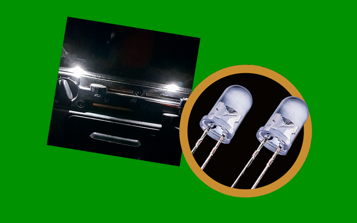 «В старых Газелях нет подсветки второстепенных органов управления на передней панели, и ночью приходилось наощупь включать вентилятор или регулировать температуру. Я купил два белых светодиода, по их размерам просверлил два отверстия прямо над органами управления, а питание взял от подсветки прикуривателя. Теперь ночью все видно».