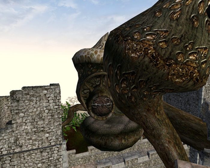 У телваннийского стражника, патрулирующего подходы к Тель Восу, интересуемся свежими сплетнями. И он рассказывает, что их новый лорд-маг господин Ариион многое сделал для поселения, и большинство им очень довольно. Однако у них до сих пор трудности с соседним эшлендерским племенем Зейнаб. Проблема обусловлена тем, что местные жители и кочевники плохо понимают друг друга. Капитан личной стражи Ариона Туредус Таланиан ищет того, кто разбирается в эшлендерах, чтобы наладить с ними связь. Да что в этих нищебродах разбираться? Раздать бабам бусы, мужикам наконечники для стрел, вот тебе и установленный контакт. Где тут ваш Арион со своим капитаном? Для этого, оказывается, надо, как и заведено у Телванни, взлевитировать на верхушку башни и найти дверь, выходящую на юг. Задираем голову. Тель Вос представляет собой крепостное сооружение из белого камня, типичный форт имперской архитектуры, но с проросшими в середине гигантскими грибами, какие маги используют для жилья. Похоже, телванийцам удало