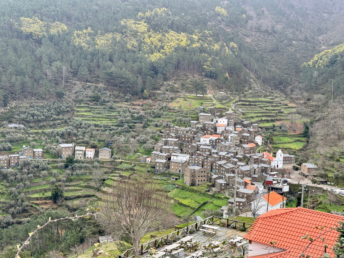 В начале марта у детей были каникулы, и мы устроили себе автопутешествие: поехали из Португалии, где сейчас живем, на север Испании, останавливаясь в интересных местах по пути. Первой остановкой стала деревня Piodão — маленькое, уединённое место в горах Португалии, которое я давно хотела увидеть своими глазами. Piodão называют деревней-призраком. Но это не про мрак и ужасы, а скорее про ощущение: будто ты попал в забытую временем локацию, которую кто-то когда-то случайно построил посреди гор и с тех пор больше не трогал. Все дома здесь — из тёмного сланца, с голубыми оконными рамами. Из-за цвета они как будто сливаются с окружающими склонами, и кажется, что деревня вырастает прямо из горы. Всё выглядит максимально органично и красиво: домики, которые словно стекают по склону, цепляясь друг за друга, узкие улочки, лестницы, пороги, мостики... А вокруг — горные ручьи, водопады, летом можно купаться. Сейчас же, весной, здесь сыро, прохладно и почти нет людей. И в этом есть особое удовольс
