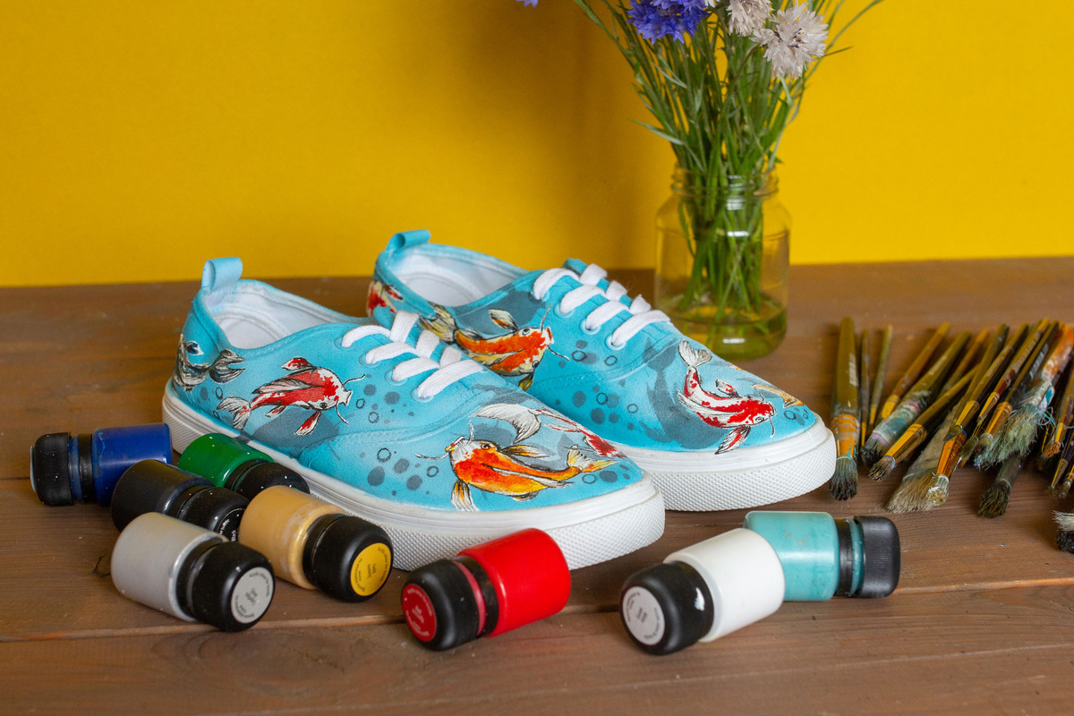 - адовые пятновыводители могут испортить цвет НЕ НАДО ТАК! Хуже всего для росписи - дешёвая обувь. Ведь жизнь рисунка напрямую зависит от долговечности обуви. Сколько краски бы я не нанесла, она не склеит дырки в подошве или протёртые носки. И если вы хотите носить свою уникальную пару обуви долго: 2. Ухаживайте за обувью, как следует 3. Не надо подвергать её испытаниям в виде футбола или похода в горы (но и тут есть исключения) И тогда я могу вам гарантировать результат на много сезонов вперед. Хотя согласитесь, эти пр