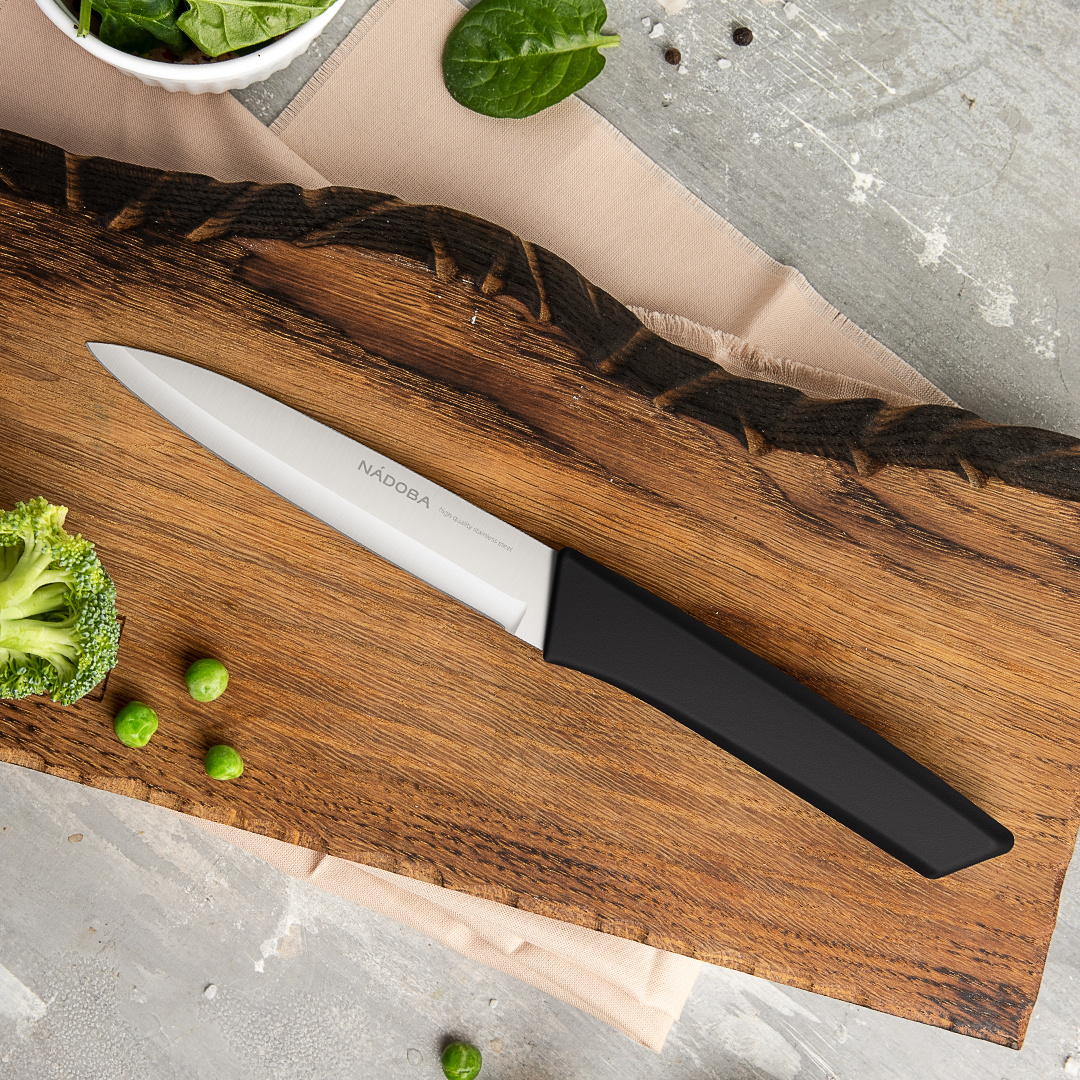 Этот пост особенно порадует тех, кто любит сдержанную классику, ведь речь пойдет о ножах NADOBA коллекции Neda в брутальном сочетании черного и серебристого. Кроме классического дизайна, ножи Neda обладают прекрасными техническими характеристиками. Нержавеющая сталь с повышенным содержанием углерода и высокой твердостью (52-54 HRC) устойчива к коррозии и механическим повреждениям. Благодаря особой термической обработке лезвия ножей долго не требуют подточки, сохраняя исключительную остроту долгое время. Neda – олицетворение прагматичности. Идеальный баланс в сочетании с легким качественным резом делают работу с ножом комфортной с абсолютно любым продуктом: и с жестким жилистым мясом, и со свежими овощами. Процесс нарезки определенно станет гораздо проще! Рукоять ножа из высокопрочного пластика с покрытием «Софт-тач» проста в уходе, устойчива к влаге и механическим повреждениям. Ножи можно мыть, как просто под проточной водой, так и в посудомоечной машине, выбирая температуру не выше 50