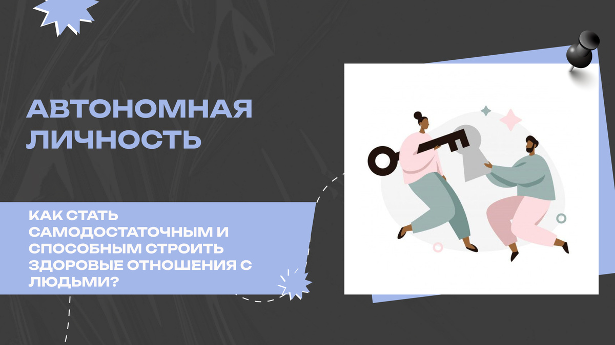 Сегодня я буду говорить о том, что такое “автономия” в формировании личности и почему это не связано с “одиночеством”. Сталкиваюсь с тем, что автономной личностью быть боятся, так как есть переживание, что, если я буду автономным человеком, то останусь в одиночестве.