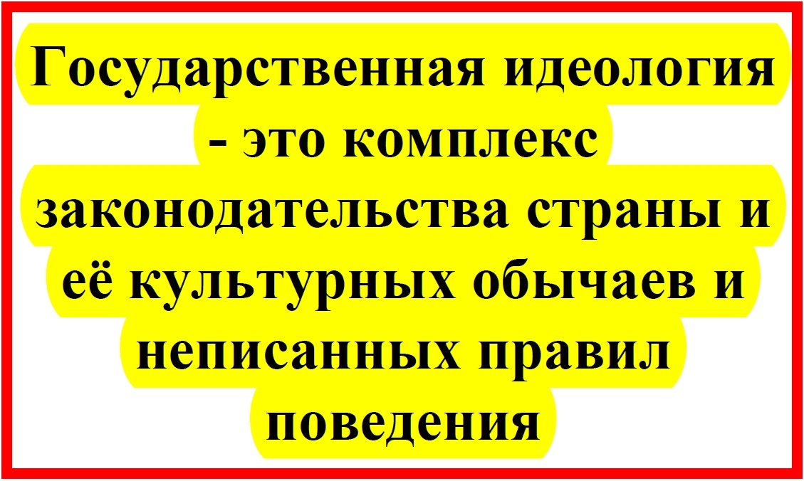 Государственная идеология - это комплекс законодательства страны и её культурных обычаев и неписанных правил поведения