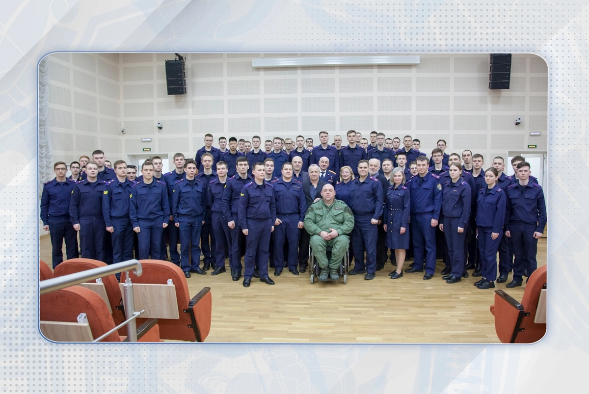 В преддверии 80-й годовщины Победы в Великой Отечественной войне Санкт-Петербургскую академию Следственного комитета посетили Герой России Алексей Николаевич Махотин и кавалер ордена Мужества Николай Николаевич Евтух, которые провели для курсантов урок мужества. На встрече также присутствовали исполнительный директор Союза ветеранов «Тайфун» подполковник запаса Андрей Витальевич Кочетков, руководство и сотрудники академии и Главного следственного управления Следственного комитета Российской Федерации по городу Санкт-Петербургу. Мероприятие открыл и.о. ректора академии В.А. Мишенин, отметив важность сохранения памяти о подвигах героев прошлых лет и современности: «Поступки людей, ставшие выдающимися примерами нравственного поведения, служения Родине и самопожертвования ради других, во все времена вызывали восхищение и гордость за страну, становились ориентиром для воспитания подрастающего поколения». В ходе мероприятия был организован показ документального фильма «За себя и за того