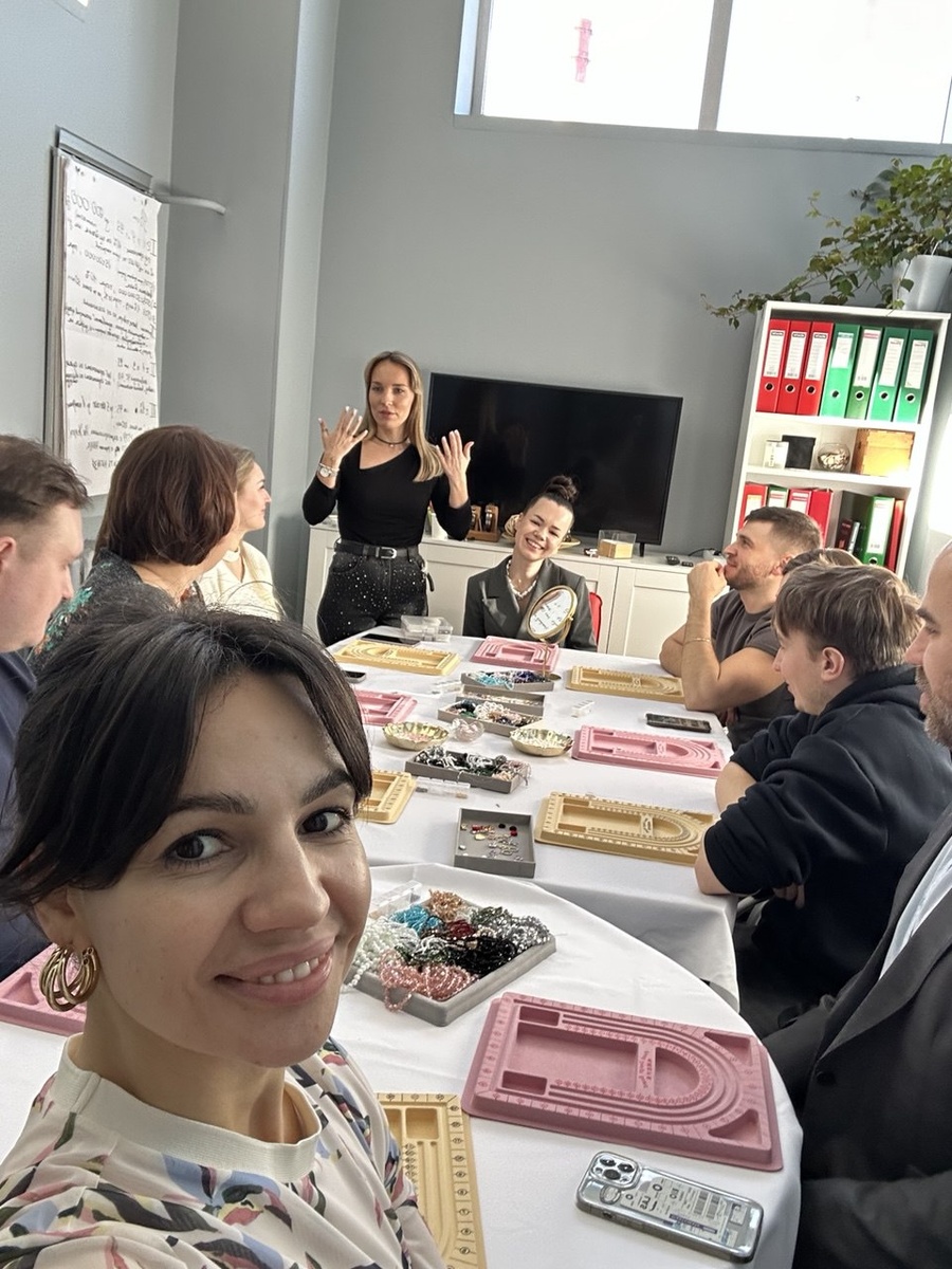 8 Марта — это ведь не просто день в календаре, а прекрасный повод отметить достижения женщин и создать праздничное настроение в офисе! Вы когда-нибудь задумывались, а почему важно отмечать женский день в коллективе? Международный женский день — отличная возможность создать праздничное настроение и укрепить коллективный дух. Независимо от того, выберете ли вы уютный кофе-брейк, тематическую вечеринку или мастер-класс, главное — уделить внимание и подчеркнуть красоту, индивидуальность каждой сотрудницы! По уже прекрасной сложившейся традиции праздник прошел за интереснейшим мастер-классом по созданию украшений! Хотим вам сказать по секрету – заинтересованы были не только девушки, но и наши замечательные мужчины. Каждый мог сделать украшение себе по душе – серьги, подвески, ожерелье и браслеты. При этом все ушли домой не только с прекрасным настроением, но и, прихватив с собой, самостоятельно созданное украшение. Праздник закончился аппетитным застольем с поздравлениями и прекрасным ве