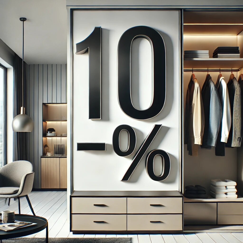 Вы с нами впервые? Тогда получите скидку 10% на любую корпусную мебель: кухни, шкафы, гардеробные и ТВ-зоны!