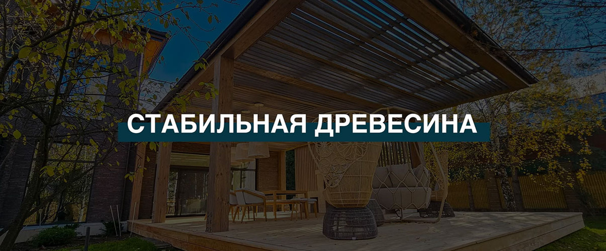 Стабильная древесина – это древесина, которая практически не гниет даже в уличных условиях, не подвержена биопоражениям, не требует покраски или регулярного ухода, стабильна к деформациям, то есть ее не будет гнуть, ломать лодочкой, срывать с крепежа и так далее.