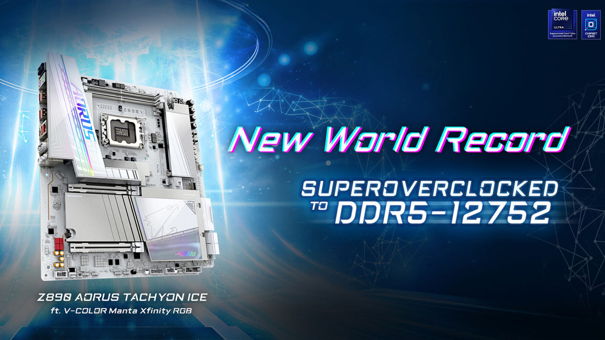 Тайваньская компания Gigabyte совместно с известным оверклокером HiCookie буквально выжала максимум из новой оперативной памяти и установила новый абсолютный рекорд скорости для настольных ПК. Чтобы добиться такого результата, им пришлось прибегнуть к методам, которые обычному пользователю в голову никогда не придут. Замедлить процессор до черепашьей скорости и "поливать" память жидким азотом, чтобы обеспечить вычислительной системы оптимальные условия. Вообще, задумывались ли вы когда-нибудь о том, что оперативную память нужно охлаждать? Наверняка нет, если вы не ставите перед собой цель побить все мировые рекорды по разгону. А вот для таких энтузиастов, как HiCookie, это вопрос жизни и смерти, в прямом смысле слова. Этот гуру оверклокинга взял материнскую плату Gigabyte Z890 Aorus, процессор Core Ultra 285K и одну планку памяти V-Color Manta XFinity RGB DDR5 CUDIMM и разогнал ее почти до 13 000 MT/с! И все это при постоянном охлаждении жидким азотом – вот это страсть к разгону! Такие