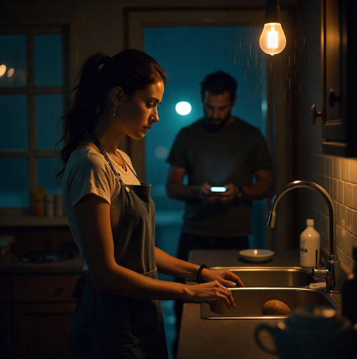 Виктория метнулась обратно к раковине, включила воду, схватила нож. Сердце колотилось, отдаваясь в висках. Когда Игорь вошёл, она чистила ту же картофелину, хотя от неё почти ничего не осталось.