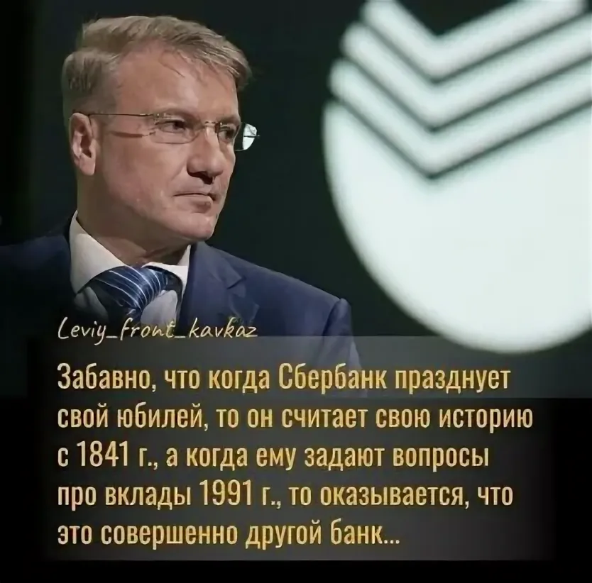 Не знаю, слышали вы, или нет, но у нас в Питере в 2010-е годы про Сбербанк ходила такая поговорка: "Самый классный бизнес - взять деньги под 4% у пенсионеров и отдать под 34% молодёжи. Вообще работать не надо!". И вот именно так и было. Старики, свято верившие, что "в других местах точно обманут", всю жизнь несли свои гроши в "государственный банк", который платил им самые низкие проценты по банковским вкладам в стране. Они почему-то забыли и простили Сбербанку 1991-й год, когда их деньги сначала заморозили, а потом выплатили без учёта жутчайшей инфляции, и на то, что было в своё время накоплено на машину, можно было купить разве что подержанный телевизор. Я тоже, кстати, тогда "попал под раздачу". Почему то мне казалось верхом разумности - с каждого заработка часть денег откладывать "на книжку". Это был первый и последний мой счёт в Сбербанке. Впрочем, это всё уже история. Хотя, лично для меня подобные вещи не имеют срока давности и я не пользуюсь ни одним из продуктов нынешнего "Сбе