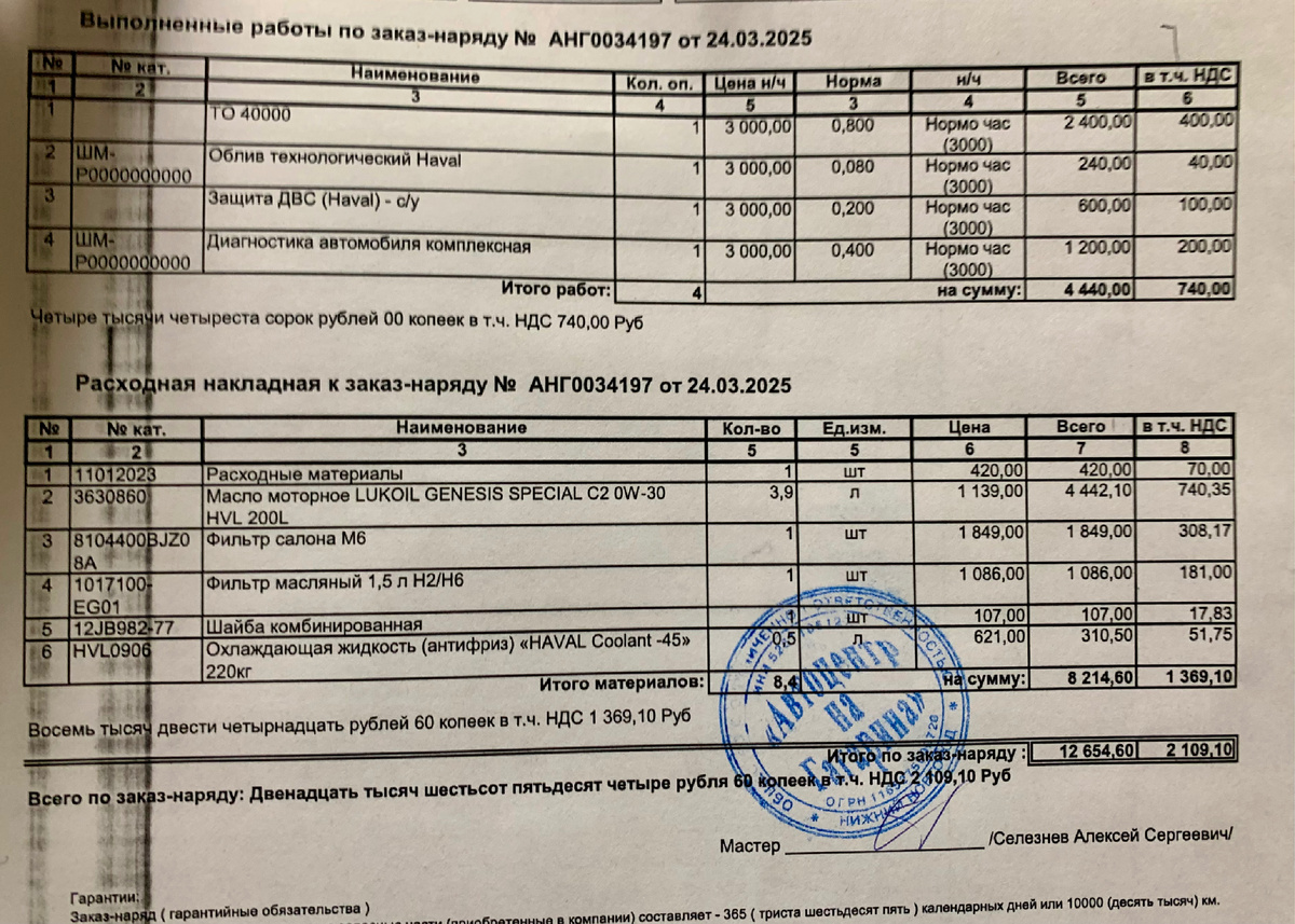 Финальная стоимость за ТО и доливка антифриза 12654 руб. По подвеске, электронике нареканий нет. Всё штатно.