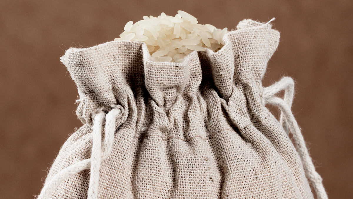 Саше с рисом – дешевое и рабочее средство от влаги в кухонных шкафах и ящиках для столовых приборов. Смастерить его можно за пару минут: 1. Возьмите обычную марлю или тонкую ткань. Сделайте небольшой плотный мешочек. 2. Засыпьте в мешочек крупу. Лучше всего подойдет среднезерный рис – в нем мало крахмала, он не слипается и хорошо впитывает воду с посторонними запахами. 3. Плотно завяжите или зашейте мешочек. По желанию в саше можно добавить пару капель эфирного масла, пряности или травы для приятного аромата. Готово! Можно использовать по назначению.