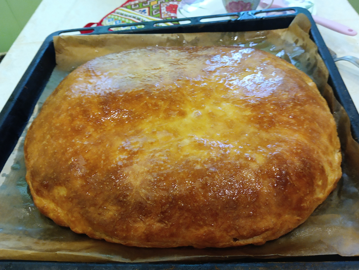 Захотелось с вами пообщаться,дорогие мои . Как у вас день прошел, а у нас по идее ,выходной,у мужа ,но день получился насыщенным. С утра решила поставить тесто на пирог и испечь рыбник ,который хотела приготовить ещё 22 числа. Но тогда не получилось и я не стала откладывать на потом. Вообщем тесто подошло,а муж сегодня мне с рыбой помог,разделал ее и для меня это, большая помощь.Ну а я пожарила лук, подготовила противень и давай шуровать. Рыбник печь. На это ушло почти 3 часа ,но зато какой итог,посмотрите... С морским окунем ,сегодня. Но мы сразу не стали кушать,я его просто прикрыла полотенцем,а сами пошли на нашу дачу,огород. Надо собаку вывести и погулять ,и пчёлок проведать. А день то такой хороший , солнечный ,хотя и ветерок. Это Коля с Диком. Немного дали ему на солнышке ещё и с нами посидеть,а так- муж его хорошо прогулял. Да,потом стало теплее ,до 6 градусов сегодня тепла. Хотя земля ещё замёрзшая,понятно,ночью все минус держится Потом муж ещё пчёлкам водич