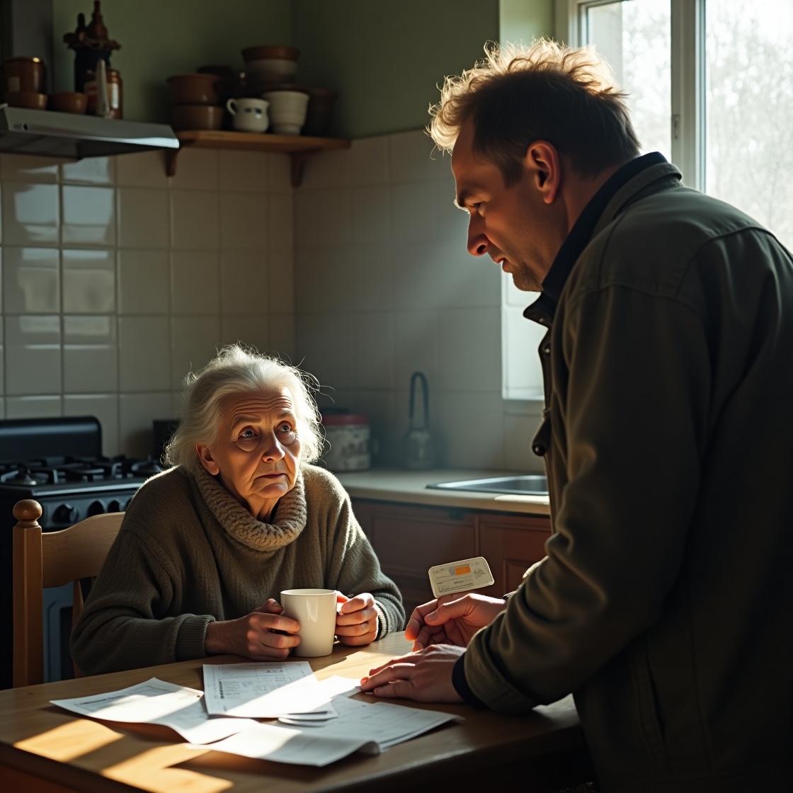 Я сидела за столом, передо мной лежала стопка квитанций за квартиру, которые я только что разбирала. Руки ещё дрожали от утренней смены в магазине — полы мыть не сахар, особенно в мои шестьдесят два. А тут ещё сынок пожаловал. Последнюю зарплату, тринадцать тысяч с мелочью, я сняла утром, чтобы протянуть до пенсии. И вот он, как по часам, явился.