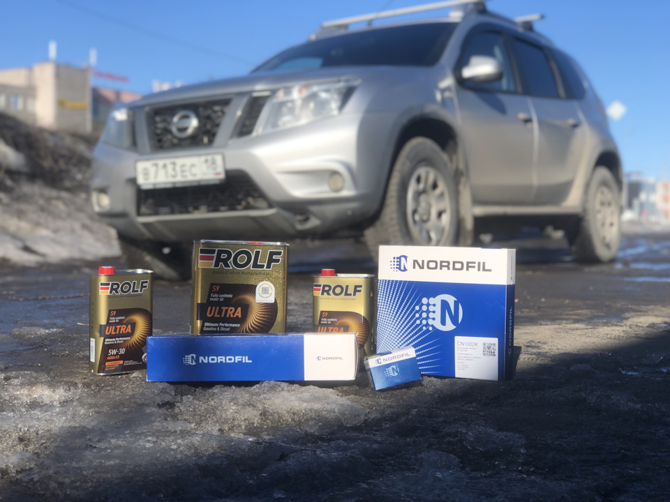 Всем привет други и подруги🤭 Проехали мы чуть более 6тыс, пора менять масло и фильтры готовя авто к летнему сезону 👌 Масло выбрал так же как и в прошлый раз фирмы ROLF только с другим допуском ACEA C3, фильтры как обычно беру только NORDFIL, уже много лет пользуюсь в основном ими. Масло заказываю всегда у официальных диллеров в магазине OZON Едем как обычно в в наш сервис и приступаем к работе 👌 Начинаем с смены масла Достаем новый фильтр и масло Требуемый объем конечно в NISSAN лютый, практически 6литров Заливаем масло Далее приступаем к замене воздушного фильтра, процедура максимально простая на Nissan Старый фильтр знатно повидал жизни 🙈 Теперь ставим новый фильтр NORDFIL Процесс замены воздушного фильтра записал, вдруг кто не в курсе, на сколько это простая замена На этом я заканчиваю , всем добра и мира🙏