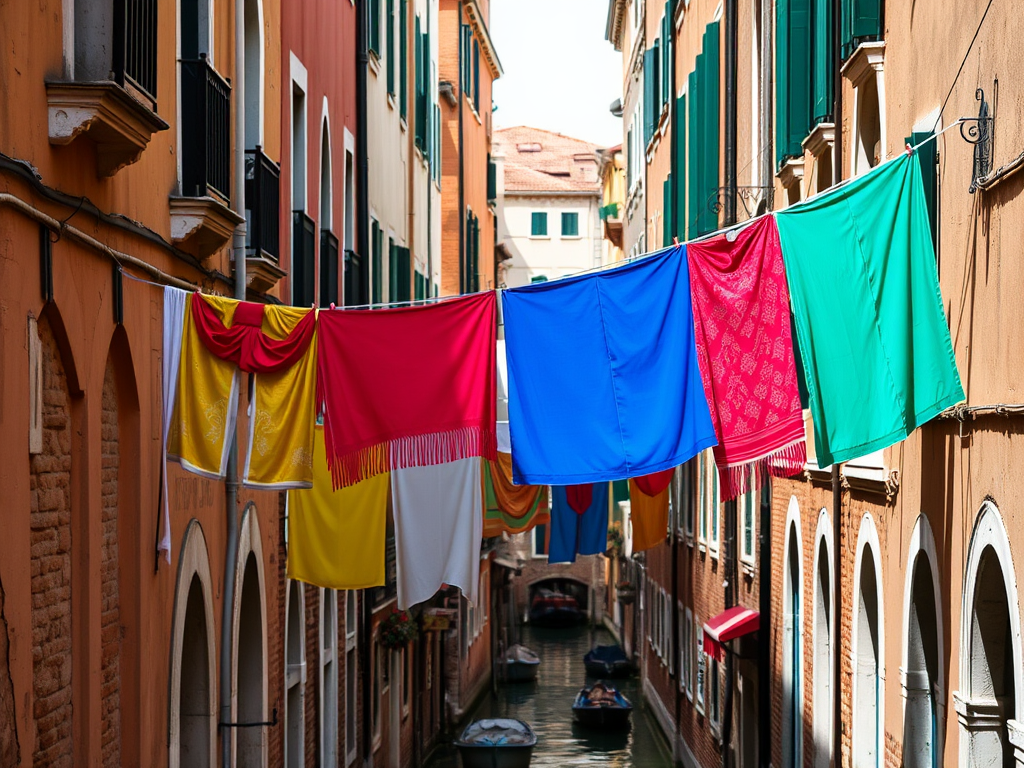 Гуляя по улочкам Венеции, часто встречаешь развевающееся белье, которое создает уникальную атмосферу города. Яркие цвета простыней и полотенец контрастируют с историческими фасадами зданий, добавляя живости и уюта. Сушка белья на улицах Венеции имеет несколько причин: Каждое белье, развевающееся на ветру, словно рассказывает свою историю: о том, как его владелец наслаждается солнечными днями, о маленьких радостях повседневной жизни. Эти простые, но выразительные детали делают Венецию еще более очаровательной и запоминающейся. Прогуливаясь по узким улочкам, можно увидеть, как жители города общаются друг с другом, обсуждая новости или просто делясь улыбками, а белье на веревках становится частью этого живого общения. Этот элемент повседневной жизни подчеркивает тепло и дружелюбие местных жителей, превращая прогулку в настоящее путешествие по культуре и традициям Венеции. Легкий ветерок поднимает края ткани, создавая ощущение движения и жизни, словно город сам дышит и живет. Венеция — это