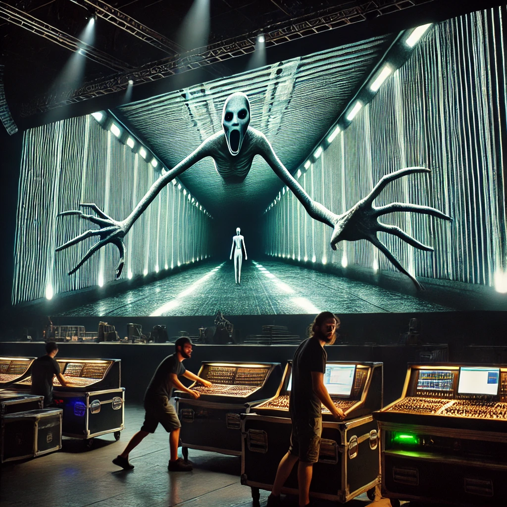 Тишина. В ушах Кости звенело. Он стоял как вкопанный, сердце бешено колотилось. Позади, в темноте, кто-то дышал. Хрипло. Неровно. Глеб первым пришёл в себя. Рывком включил фонарик на телефоне и направил свет назад. Пусто. Никаких силуэтов, никаких длинных рук. Только чёрный провал сцены и оборудование. – Что за хрень? – прошептал Костя. Но Глеб смотрел не на темноту за сценой. Он смотрел на экран. Тот снова включился. И там была трансляция. Только теперь – не сцены. На экране показывали их самих. Но… что-то было не так. Камера будто стояла в том самом тёмном коридоре. Глеб и Костя стояли спиной к экрану, а за ними… Позади них, в реальном мире, никого не было. Но на экране фигура была. Тонкая. Высокая. Медленно тянулась к ним. Руки… слишком длинные. Пальцы… слишком тонкие. Фигура стояла у них за спинами. И Костя понял. Это не запись. Это прямая трансляция. – Глеб, не оборачивайся, – прошептал он. Глеб замер. – Что? – Не двигайся. Оно… там. Он знал, что если