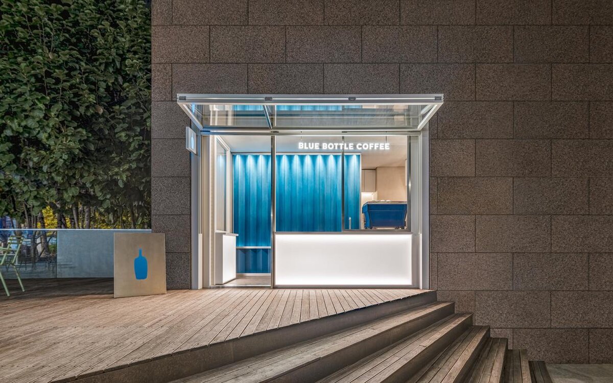Многие знают, что лично моя любимая сеть кофеен - это Blue bottle coffee. Проект архитектурного бюро one-aftr представляет собой компактную кофейню площадью 17 м², расположенную в самом центре Сеула. Немного фото и фактов о ней. Вдохновлена Hayes Valley в Сан-Франциско и открыта в 2024 году Дизайн Blue Bottle Samseong Café отличается яркой синей градиентной стеной, которая привлекает внимание и создает динамичный акцент в интерьере. Мне очень нравятся именно такие форматы кофе "с собой". Всего 17 квадратных метров. Вот планировка: Считаю очень круто, когда кофе с собой - то не сомнительного вида киоск, а красиво интегрированный в городскую среду объект. Ниже приведу несколько фото
