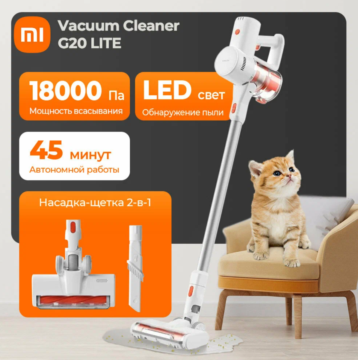 В мире вертикальный пылесос Xiaomi Vacuum Cleaner G20 успешно конкурирует с лидерами рынка. Это делает его лучшим пылесосом xiaomi vacuum cleaner g20: