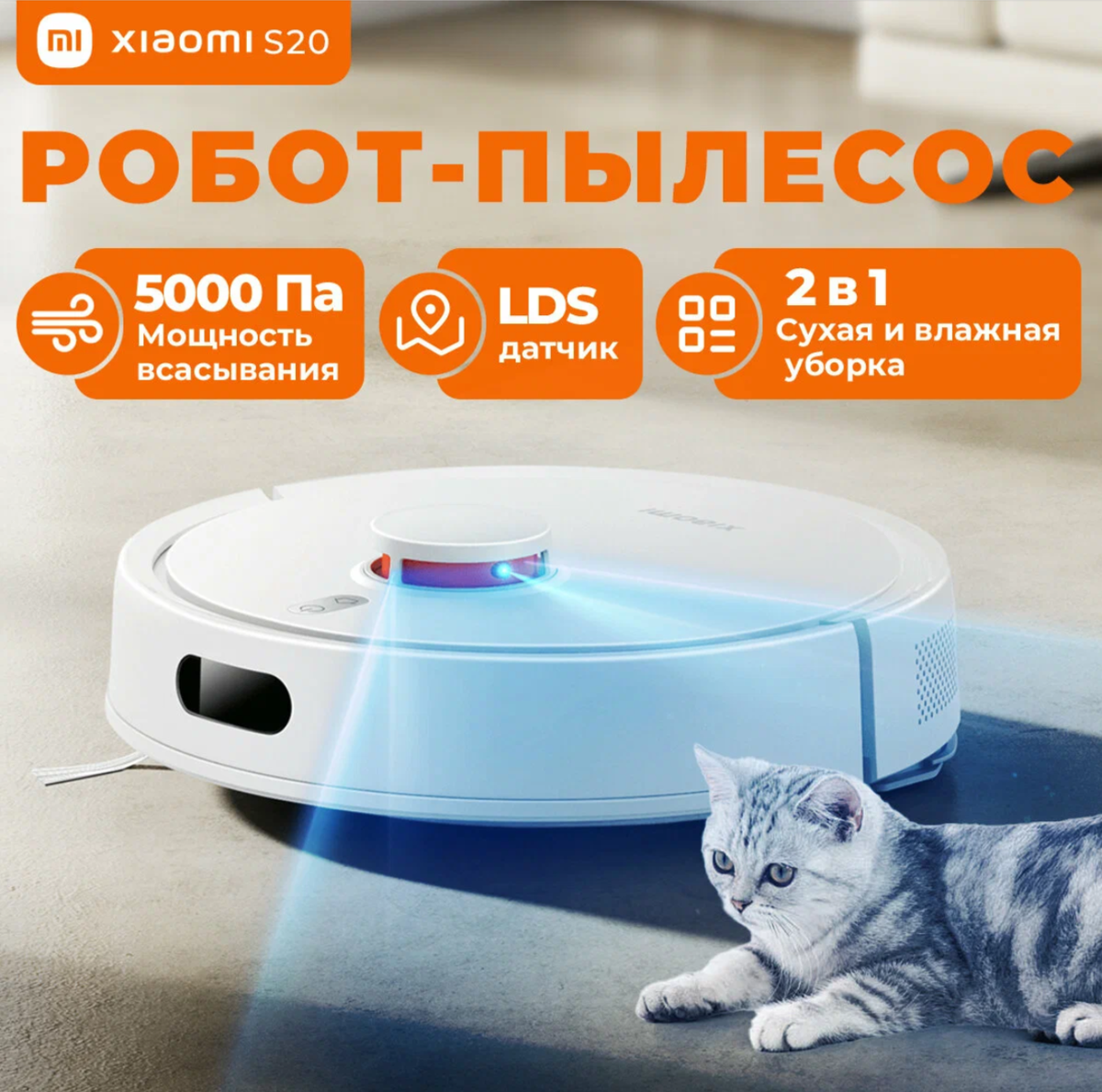 Робот пылесос Xiaomi Robot Vacuum S20 (белый) EU с влажной и сухой уборкой: интеллектуальная навигация и построение карт помещения