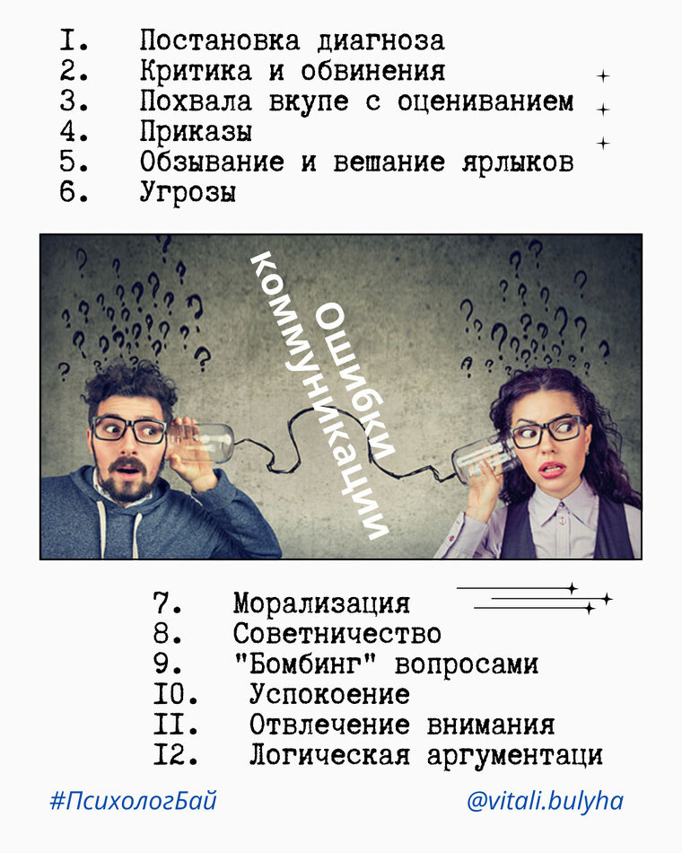 Томас Гордон (американский психолог трижды номинированный на Нобелевскую премию) определил 12 коммуникационных барьеров. Описанные Гордоном барьеры, исходя из своей натуры часто называют "грязной дюжиной".