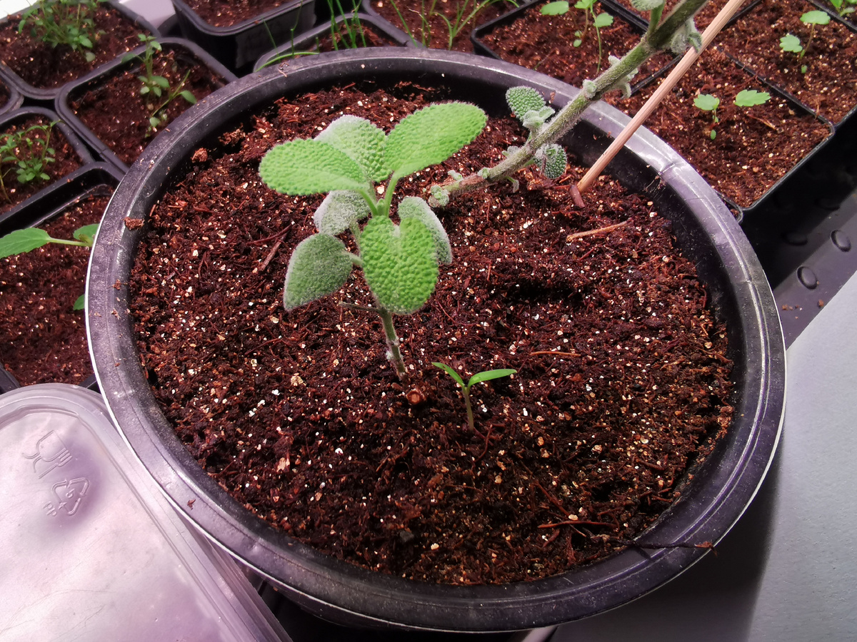 А потом решила подсыпать грунт в шалфей, который мучается на подоконнике в ожидании высадки в грунт.
