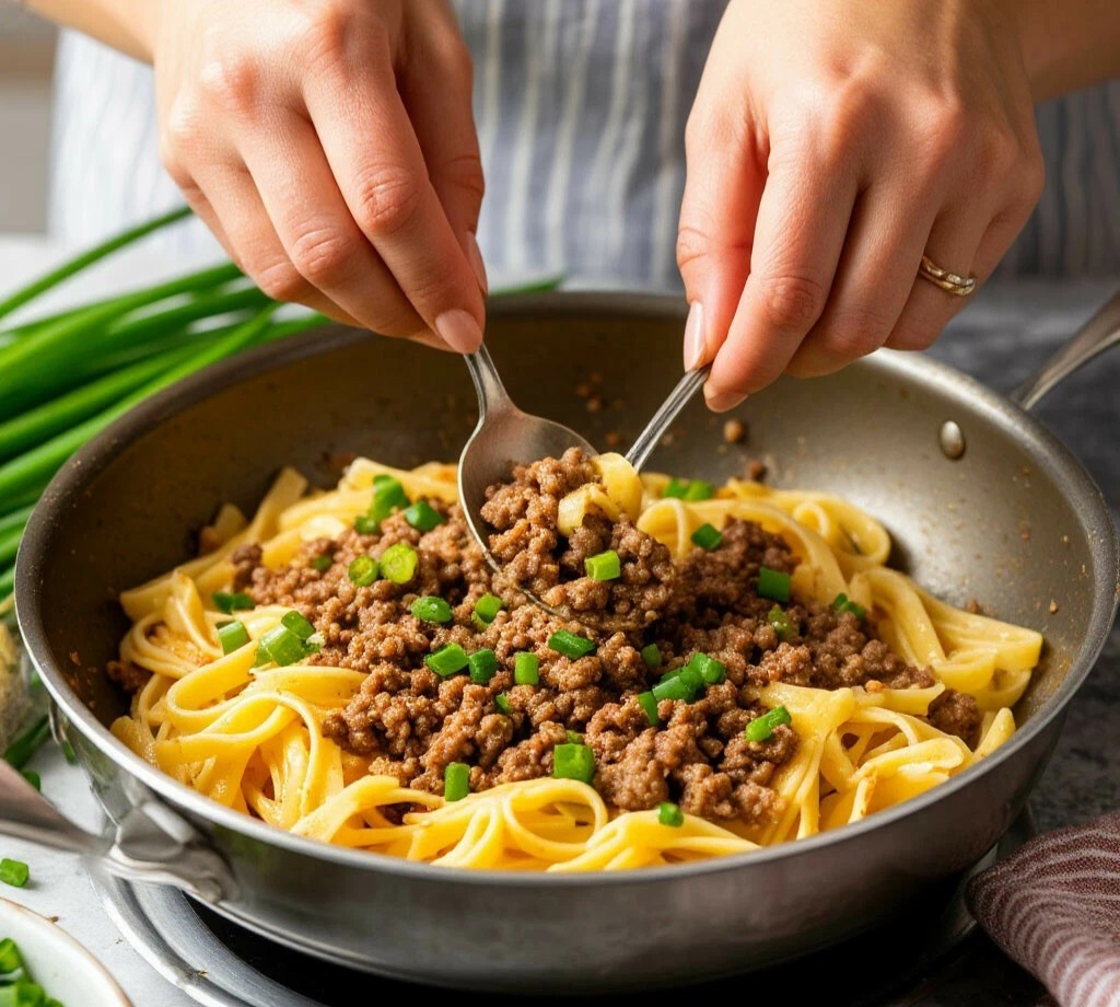 Простое, сытное и ароматное блюдо, которое отлично подходит для быстрого ужина или обеда. Ингредиенты (на 2 порции): Макароны (рожки, перья или спагетти) – 200 г Фарш (говяжий, свино-говяжий или куриный) – 250 г Зелёный лук – 1 пучок Репчатый лук – 1 шт. (небольшая) Чеснок – 2 зубчика (по желанию) Соль, чёрный перец – по вкусу Растительное масло – 2 ст. л. Сливочное масло – 20 г (по желанию, для вкуса) Приготовление: Отварите макароны в подсоленной воде до состояния al dente (чуть твердоватые). Откиньте на дуршлаг, можно слегка сбрызнуть маслом, чтобы не слипались. Обжарьте фарш: На разогретой сковороде с растительным маслом обжарьте мелко нарезанный репчатый лук до прозрачности. Добавьте фарш, разомните вилкой и жарьте на среднем огне до готовности (5–7 минут). Посолите, поперчите, добавьте измельчённый чеснок (если используете). Добавьте макароны к фаршу, перемешайте и прогрейте 2–3 минуты. Можно добавить кусочек сливочного масла для нежности. Подавайте, обильно посыпав зе