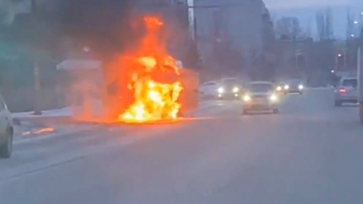 В Бердске маршрутное такси № 17 вспыхнуло посреди дороги